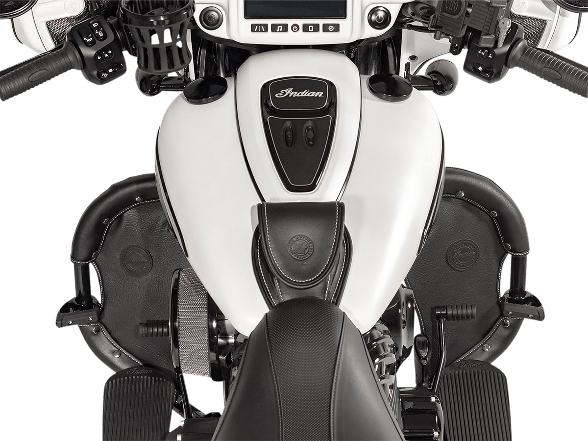 - Great addition to your Harley, Indian, or any motorcycle with 1-1/4″ engine guards (except Harley-Davidson chopped engine guard)