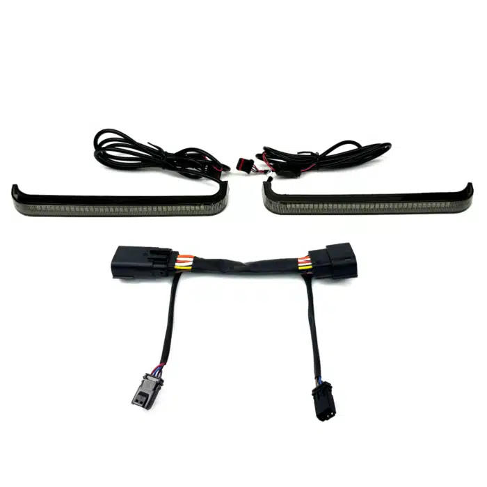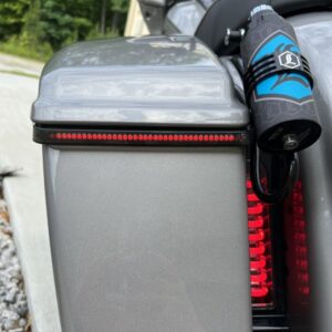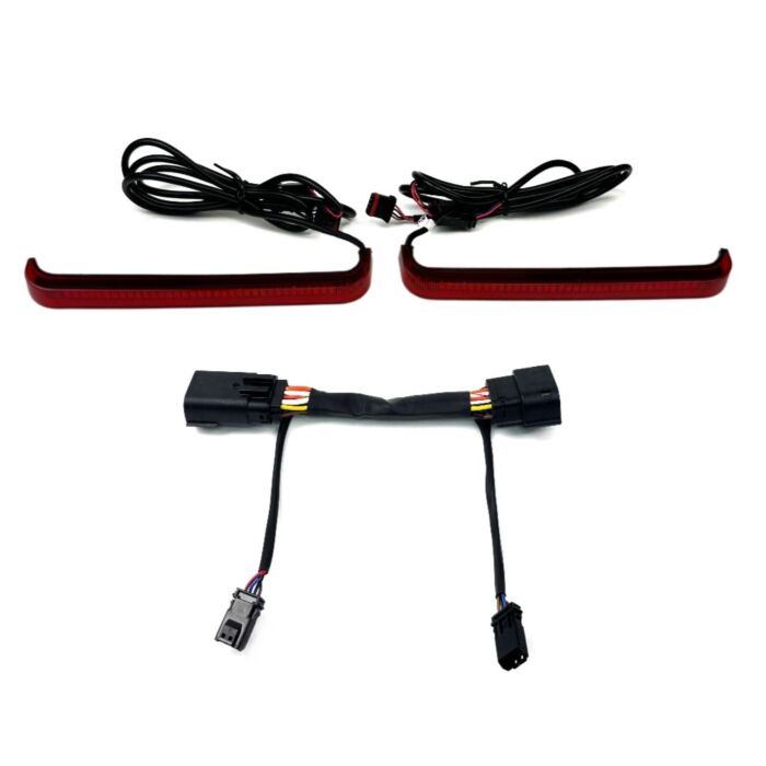 Single row of 35 dual intensity red LEDs adhere on the rear facing side of the OEM saddlebags just under the saddlebag lid on 2023-2024 Harley-Davidson® CVO Street Glide (FLHXSE), CVO Road Glide (FLTRXSE), 2024 Street Glide (FLHX), Road Glide (FLTRX), and CVO Road Glide ST (FLTRXSTSE).