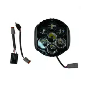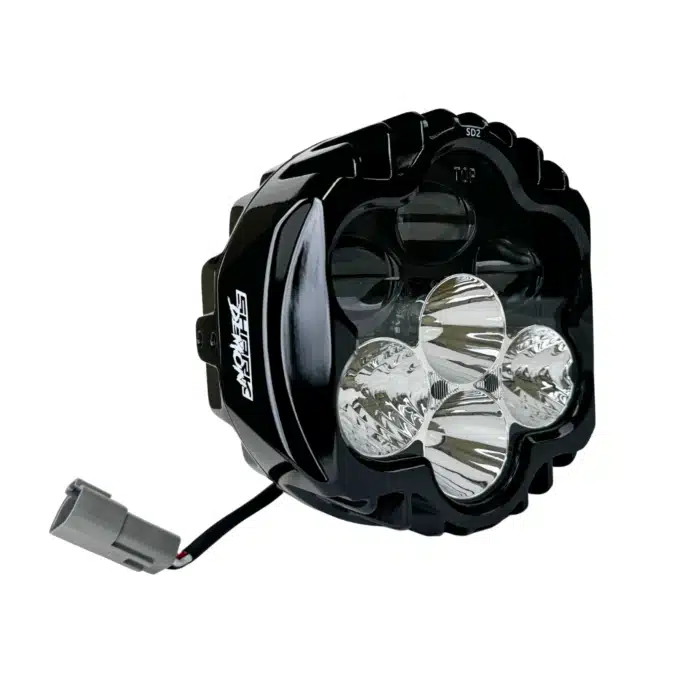 Shark Demon™ 2 FLH Batwing Headlight Kit offers high-performance illumination, specialized for motorcycle on road use. DOT & SAE compliant design with unmatched beam pattern and durability. Low beam projects 3600 raw/2651 effective lumens from three projection-style LEDs. High beam adds four additional direct-reflective LEDs boasting an impressive 9080 raw/4485 effective lumens total. Single lamp assembly is completely sealed IP67, waterproof with clear polycarbonate lens and gloss black aluminum housing. 3mm, 304 gloss black stainless steel mounting bracket offers OE style headlight adjustability for proper aiming. Plug and play wire harness and mounting hardware also included for direct OEM replacement installation on 1994-2024 Harley-Davidson® Electra Glide, Ultra Classic, Ultra Limited models (including CVO™), 1994-2013 Road King models (including CVO™), 2021-2024 Road King Special, 2009-2024 Tri Glide & CVO™ Tri Glide, 2010-2011 Street Glide Trike, 2006-2023 Street Glide models, 2010-2022 CVO™ Street Glide, and 2012-2017 Dyna Switchback (FLD).