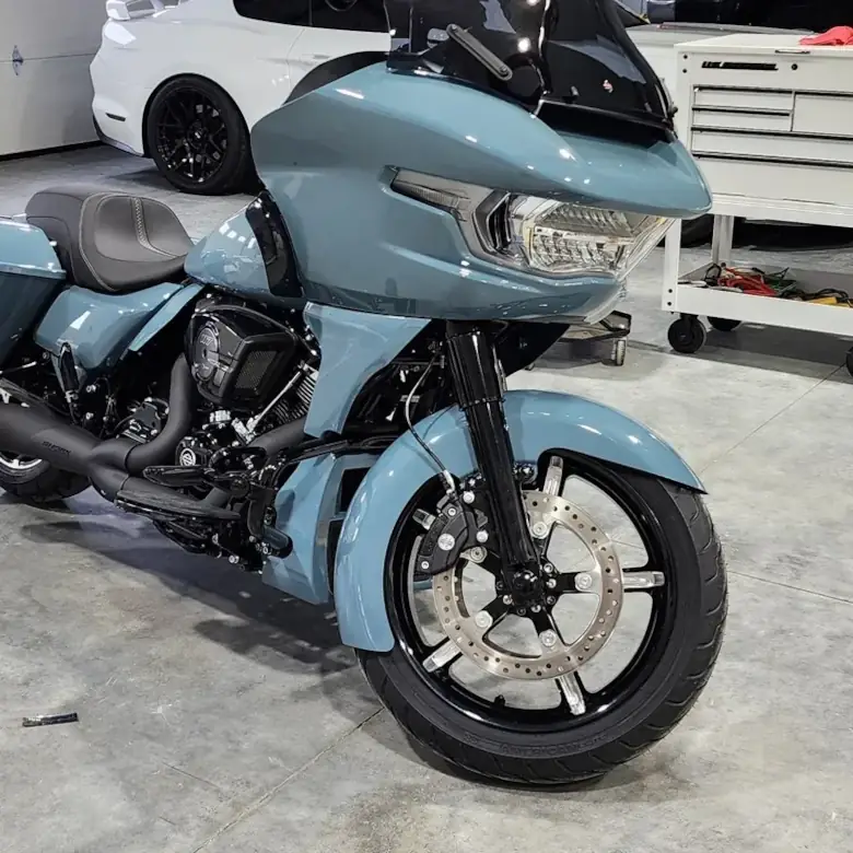 ***This kit not for use on HD trike models because trike fork legs are longer than 2 wheeled touring fork legs. Please call our shop at 269-276-9200 if you would like to discuss a 180 front tire kit for your trike.